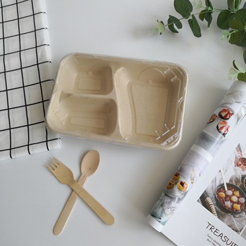 Biodegradable коробка одноразовая еда на вынос упаковка 3 отсека bento коробка